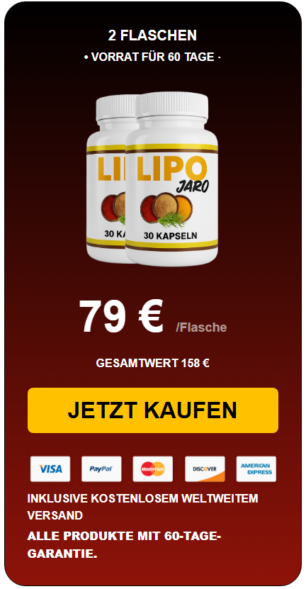 Wir sind so überzeugt, dass Sie spürbare Ergebnisse erzielen, dass wir LipoJaro mit einer 100%igen Zufriedenheitsgarantie für 60 Tage absichern. Beginnen Sie mit der Einnahme, sobald es ankommt, und bereits nach wenigen Tagen können Sie ein leichteres, energiegeladeneres Körpergefühl, weniger Zwischenhunger und mehr Fokus bemerken. Während Sie weitermachen, können sich Schritt für Schritt eine aktivierte Thermogenese, gesteigerte Sättigung und ein wohleres Verdauungsgefühl zeigen – der ideale Moment, Ihre Fortschritte zu verfolgen. Wenn Sie nach mehreren Wochen oder sogar Monaten nicht vollständig zufrieden sind, erstatten wir Ihnen den vollen Kaufpreis. Mit LipoJaro haben Sie Ihr Gewichtsmanagement und Ihren Stoffwechsel wirklich selbst in der Hand.
